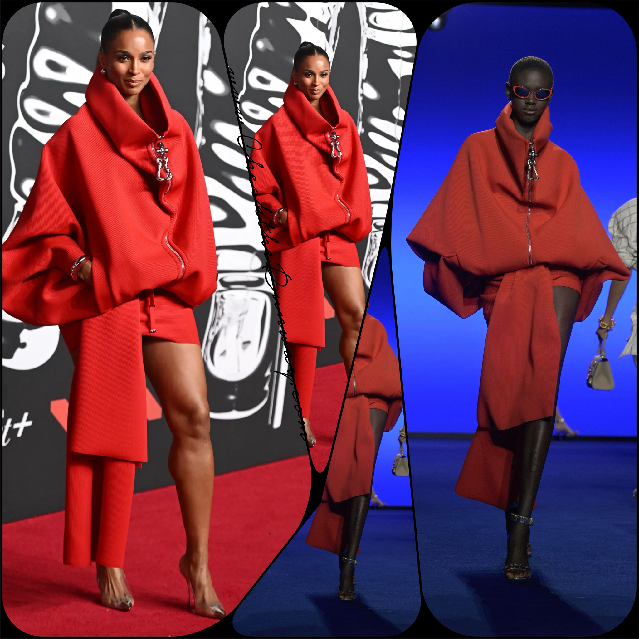 The Look: Ciara commanded the carpet in Schiaparelli SS25, a look that blurred the line between surrealism and red-carpet glamour. The dress was a sculpted a voluminous red top with oversized neckline and a mini skirt, classic Daniel Roseberry Schiaparelli drama. Such a powerful and ultra feminine look.